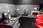 L'intérieur, soigné et élégant, est doté de parquet, d'un peignoir douillet, d'une machine à café et thé, ainsi que de services de streaming pour vos soirées cocooning. Un réfrigérateur, un micro-ondes et un canapé complètent cet espace pensé pour votre confort.